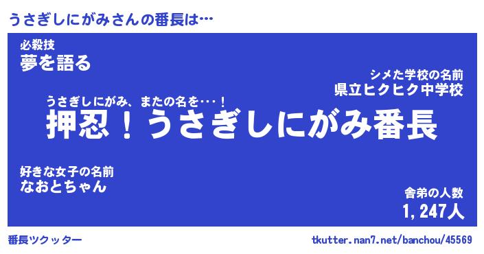 | ヒーロー風カッコイイあだ名 | 『スーパーウサギシニガミ』 |