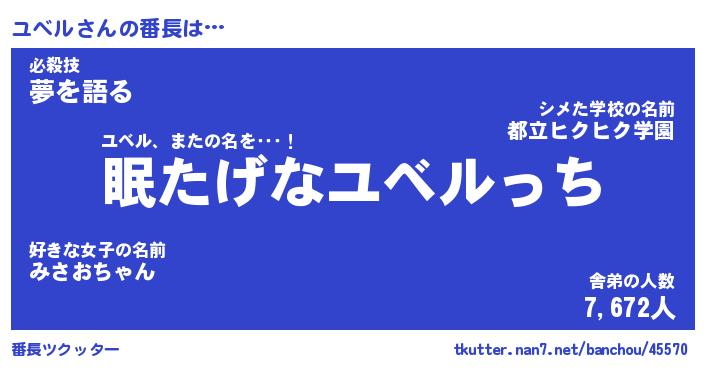| ヘコむあだ名 | 『ユベふぇ~』『牛乳』『ユベっぺ』 |