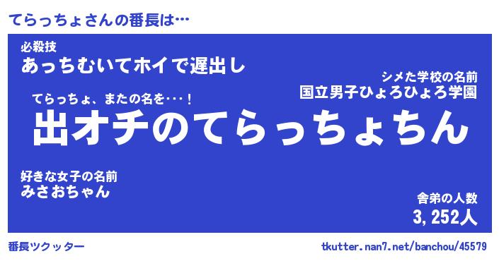 | 欧米人風あだ名 | 『マイケルてらっちょ』 |
