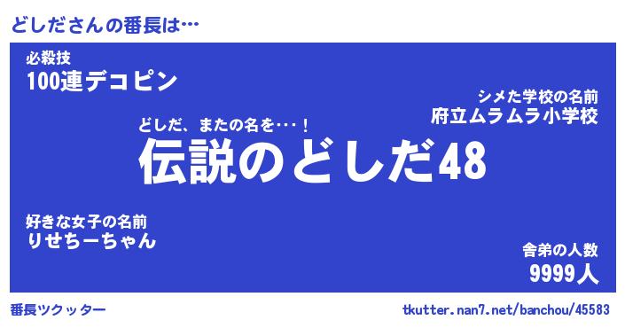 | 伝説のあだ名 | 『伝説のスナイパーどしだ』 |
