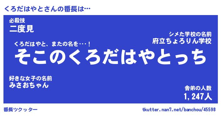 | 伝説のあだ名 | 『不死鳥のスナイパーくろだはやと』 |