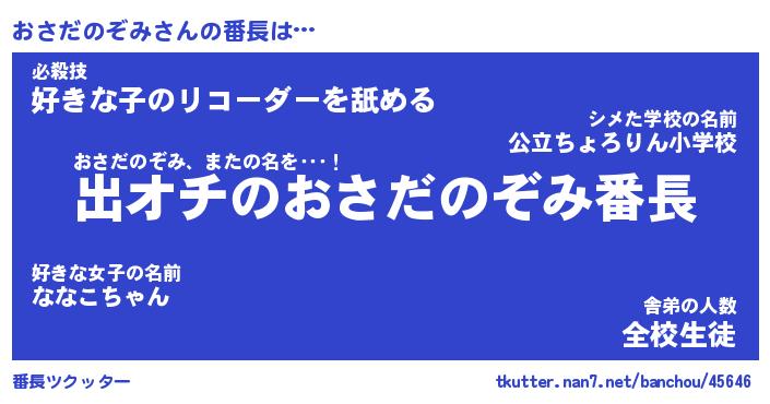 | 伝説のあだ名 | 『伝説のスナイパーおさだのぞみ』 |