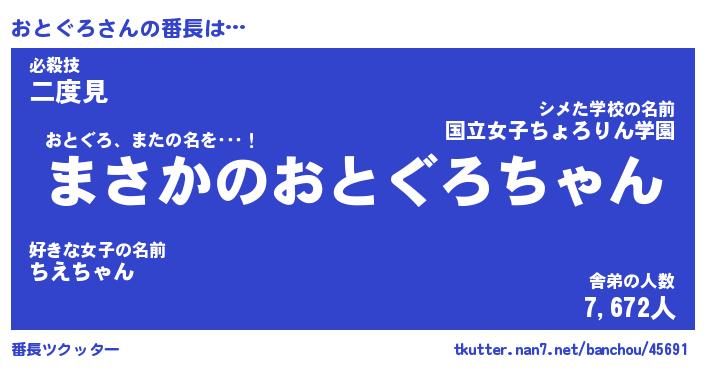 | 伝説のあだ名 | 『伝説のスナイパーおとぐろ』 |