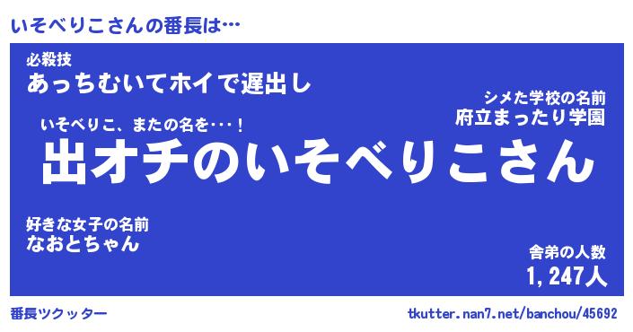 | ピコ太郎風あだ名 | 『イコ三郎』『ピイ三郎』『イソ一郎』 |