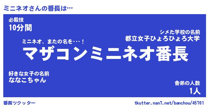 | ヒーロー風カッコイイあだ名 | 『スーパーミニネオ』『黄金騎士ミニ』 |