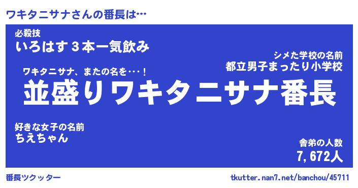 | ヒーロー風カッコイイあだ名 | 『スーパーワキタニサナ』『銀牙騎士ワキ』 |