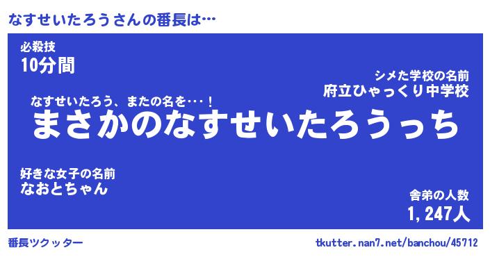 | 肩書あだ名 | 『なすせいたろう御曹司』 |