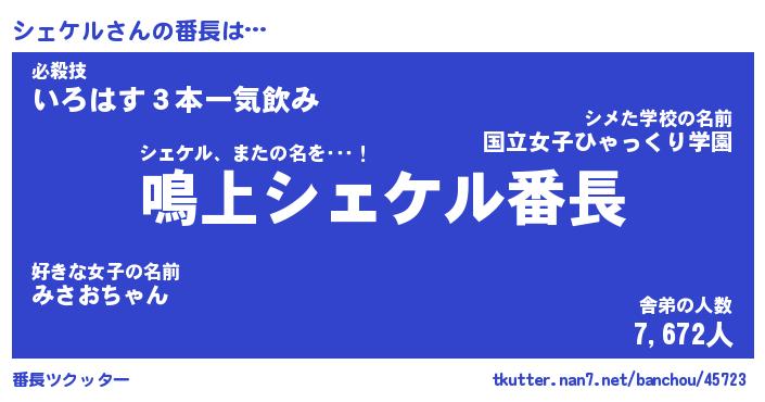 | 肩書あだ名 | 『シェケル店長』『シェケル国家主席』 |