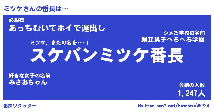 | ヒーロー風カッコイイあだ名 | 『スーパーミツケ』『ウルトラミツケマン』 |
