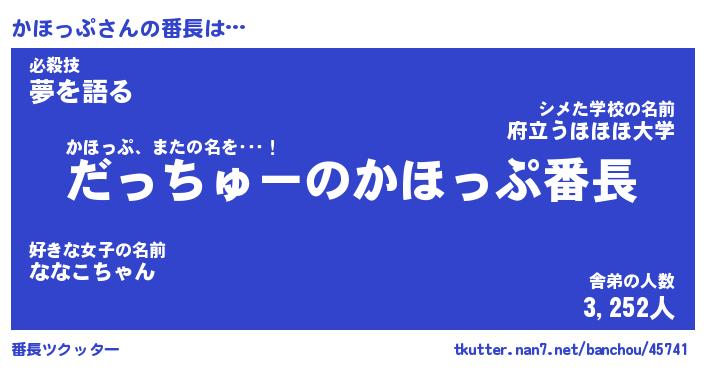 | 伝説のあだ名 | 『伝説の傭兵かほっぷ』 |