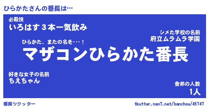 | ヘコむあだ名 | 『ひらっふぃ~』『つくし』『ひらお』 |