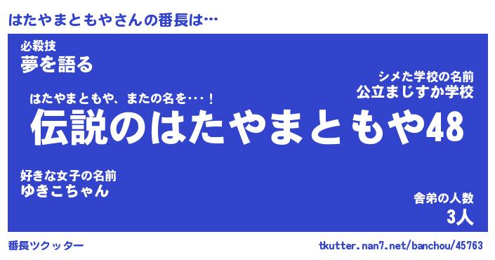 | ヒーロー風カッコイイあだ名 | 『スーパーハタヤマトモヤ』 |