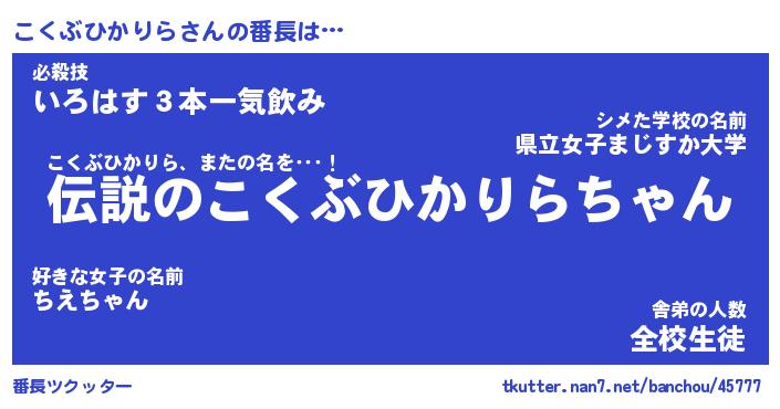 | 男性向けラノベタイトル風あだ名 | 『こくぶひかりらの憂鬱』 |