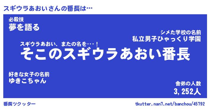 | ヒーロー風カッコイイあだ名 | 『スーパースギウラアオイ』 |
