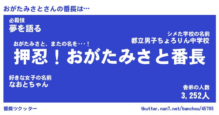 | ピコ太郎風あだ名 | 『オコ六郎』『ピオ四郎』『オガ四郎』 |