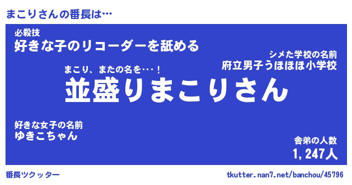 | ピコ太郎風あだ名 | 『マコ三郎』『ピマ八郎』『マコ五郎』 |