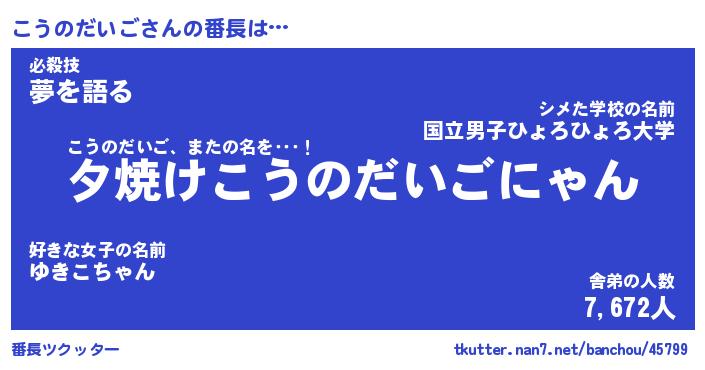 | 伝説のあだ名 | 『封印されしスナイパーこうのだいご』 |