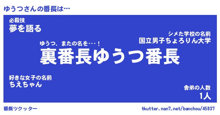 | 意味不明あだ名 | 『ペロリンゆうつ』『ゆうつフォーエバー』 |