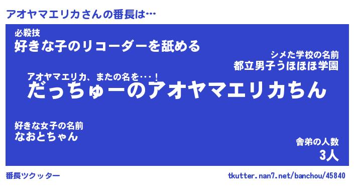 | 意味不明あだ名 | 『ペロリンアオヤマエリカ』 |
