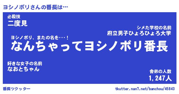 | ヒーロー風カッコイイあだ名 | 『スーパーヨシノボリ』『銀牙騎士ヨシ』 |