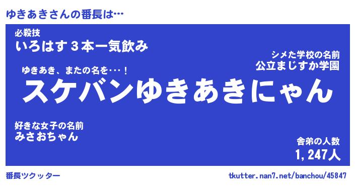 | 意味不明あだ名 | 『ペロリンゆきあき』『永久保存ゆきあき』 |