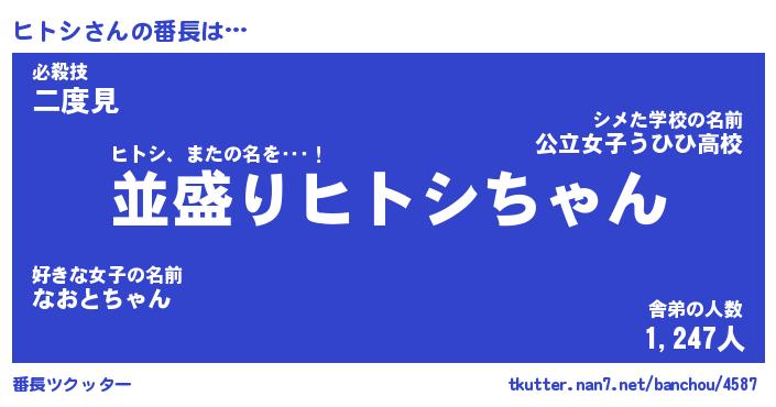 | 意味不明あだ名 | 『ペロリンヒトシ』『ヒトシフォーエバー』 |
