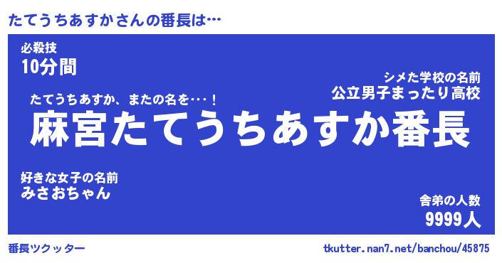 | ヒーロー風カッコイイあだ名 | 『スーパータテウチアスカ』 |