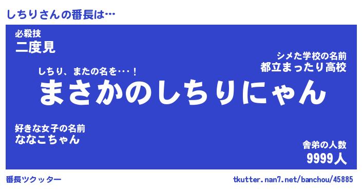 | 男性向けラノベタイトル風あだ名 | 『しちりの憂鬱』 |