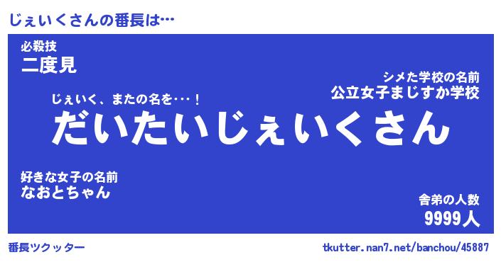 | 意味不明あだ名 | 『ペロリンじぇいく』『永久保存じぇいく』 |