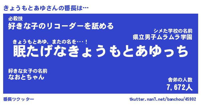| ヒーロー風カッコイイあだ名 | 『スーパーキョウモトアユ』 |