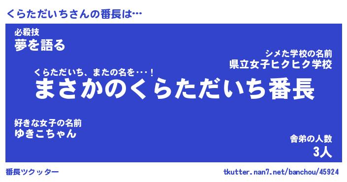 | ヒーロー風カッコイイあだ名 | 『スーパークラタダイチ』『銀牙騎士クラ』 |