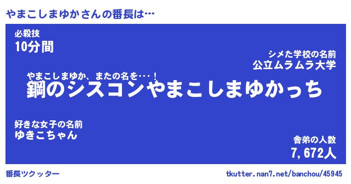 | 伝説のあだ名 | 『封印されしスナイパーやまこしまゆか』 |