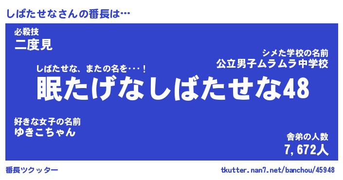 | 2回繰り返すあだ名 | 『しばしば』『ししばば』『ぬるぬる』 |