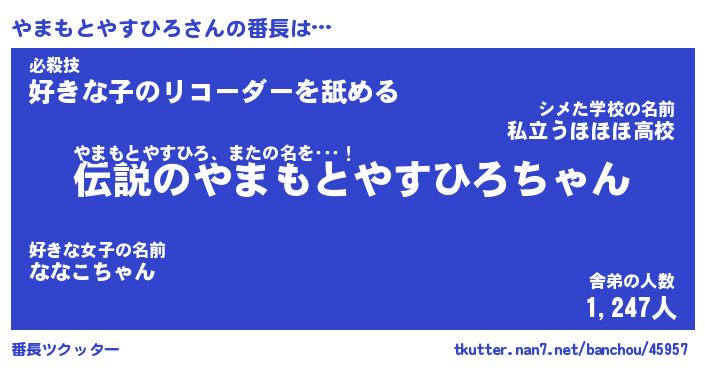 | 意味不明あだ名 | 『ペロリンやまもとやすひろ』 |