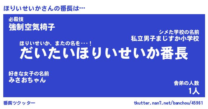 | 肩書あだ名 | 『ほりいせいかCEO』『ほりいせいか班長』 |