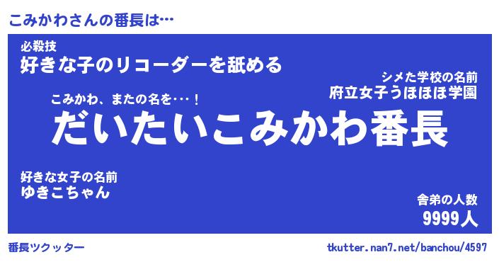 | 男性向けラノベタイトル風あだ名 | 『こみかわの憂鬱』 |