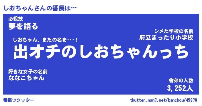 | 肩書あだ名 | 『しおちゃんCEO』『しおちゃん総理大臣』 |