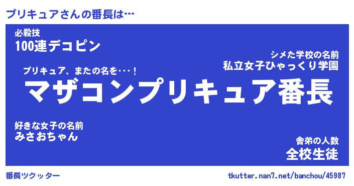 | 肩書あだ名 | 『プリキュア店長』『プリキュア国家主席』 |