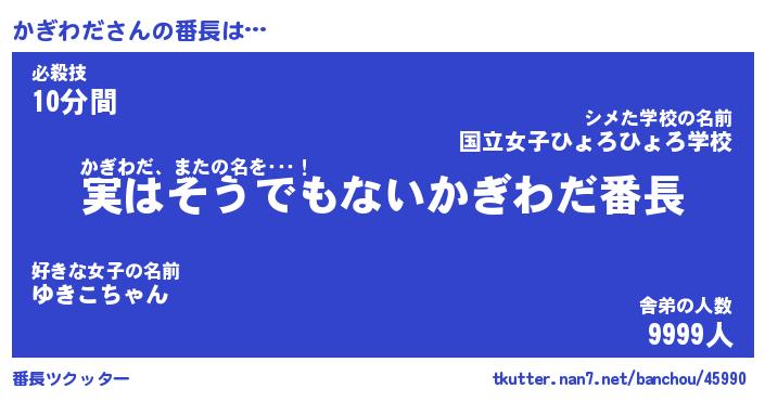 | 意味不明あだ名 | 『ペロリンかぎわだ』『永久保存かぎわだ』 |