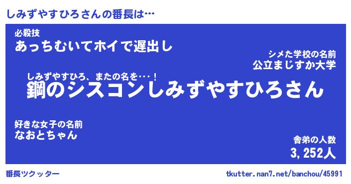 | 伝説のあだ名 | 『封印されしスナイパーしみずやすひろ』 |