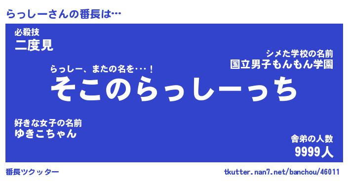 | 意味不明あだ名 | 『ペロリンらっしー』『永久保存らっしー』 |