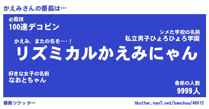 | 意味不明あだ名 | 『ペロリンかえみ』『かえみフォーエバー』 |