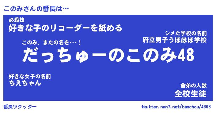 意味不明あだ名 | 『ペロリンこのみ』『このみフォーエバー』 |