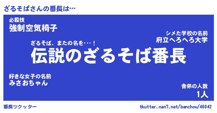 | 伝説のあだ名 | 『伝説のスナイパーざるそば』 |