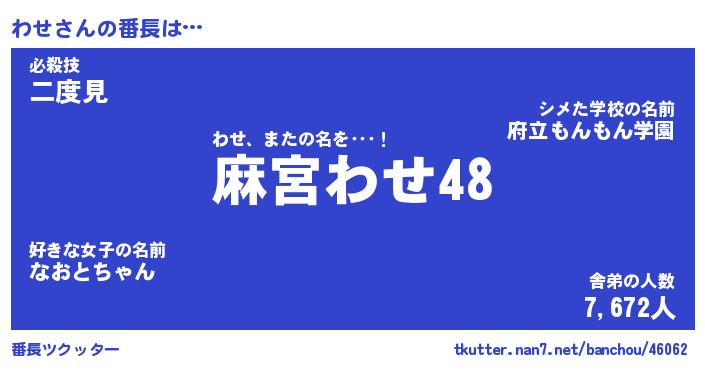 | ポケモン風あだ名 | 『ワセチュウ』『ワセダネ』『ヒワセ』 |