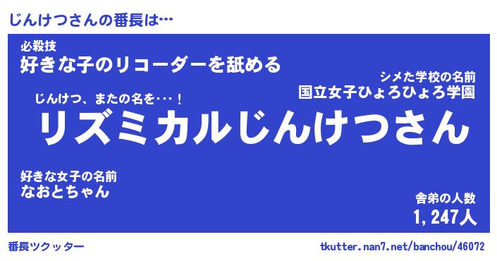 | 意味不明あだ名 | 『ペロリンじんけつ』『永久保存じんけつ』 |