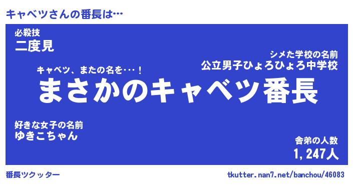| ヒーロー風カッコイイあだ名 | 『スーパーキャベツ』『銀牙騎士キャ』 |
