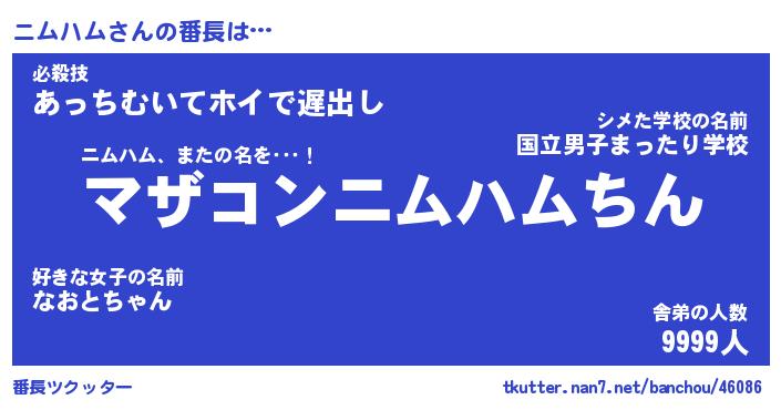 | 意味不明あだ名 | 『ペロリンニムハム』『永久保存ニムハム』 |