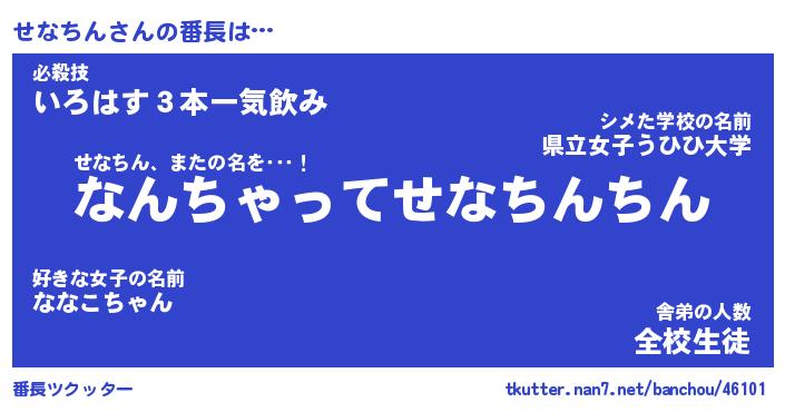 | 2回繰り返すあだ名 | 『せなせな』『せせなな』『ぼやぼや』 |