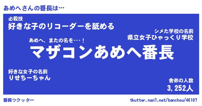 | 意味不明あだ名 | 『ペロリンあめへ』『あめへフォーエバー』 |